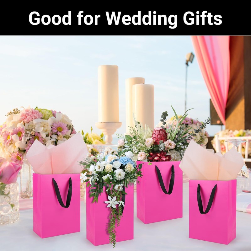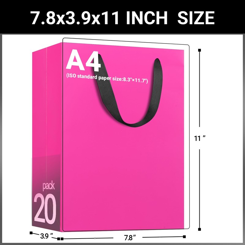 - 【 Quantity & Size】 Comes with 20pcs of medium size hot pink gift bags measuring approx. 7.8"x3.9"x11", good for storing makeups, clothing, and other party favors.