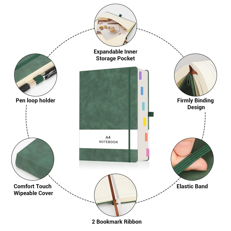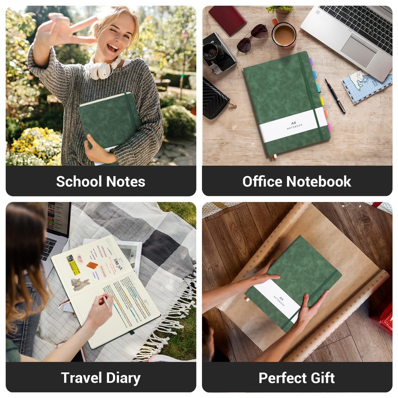 - 【Easy to Carry】1 pack A4 size 8.5x11 inches soft faux leather cover notebooks(360Pages/ 180Sheets for each notebook), humane safety rounded arc corner shape.
