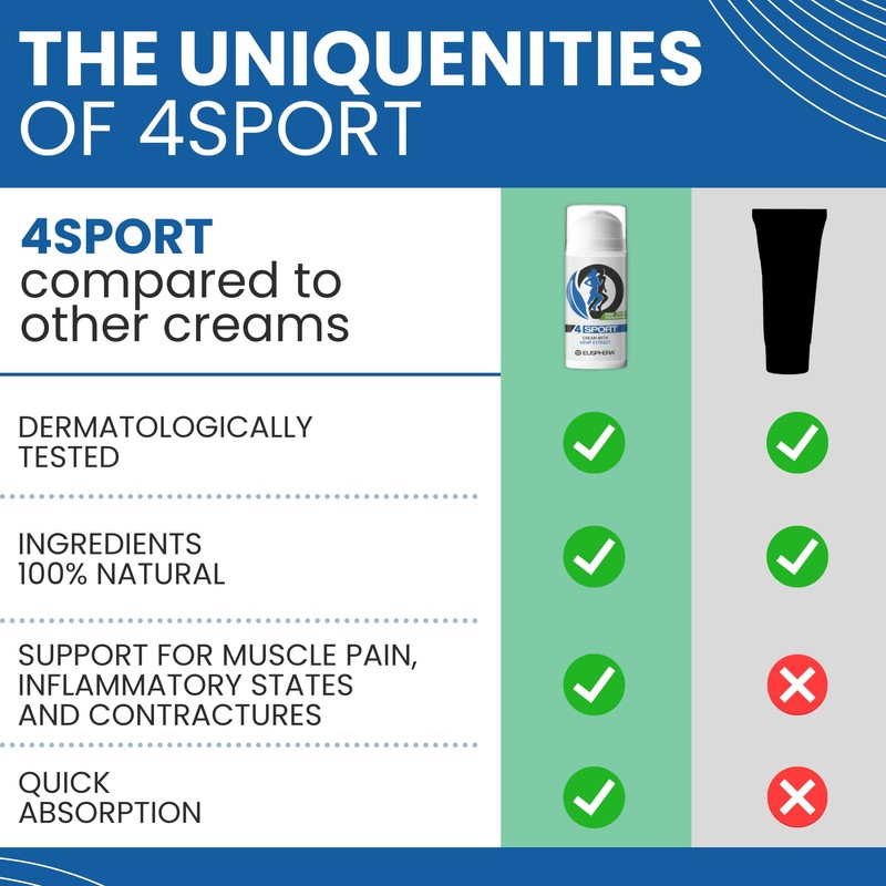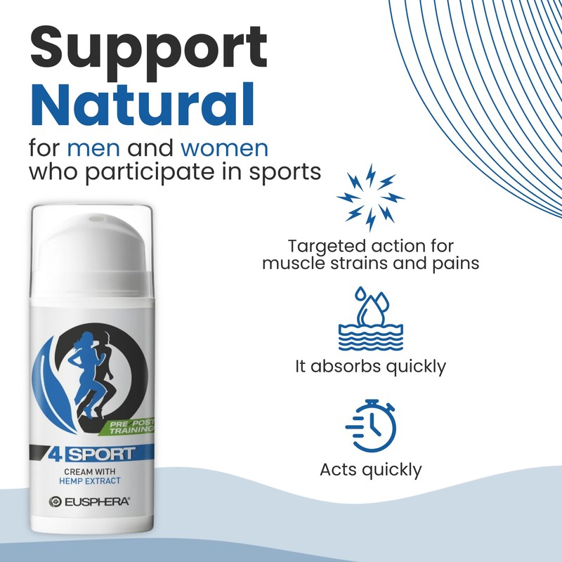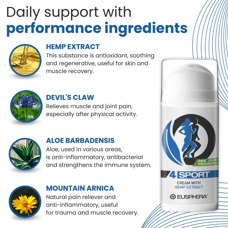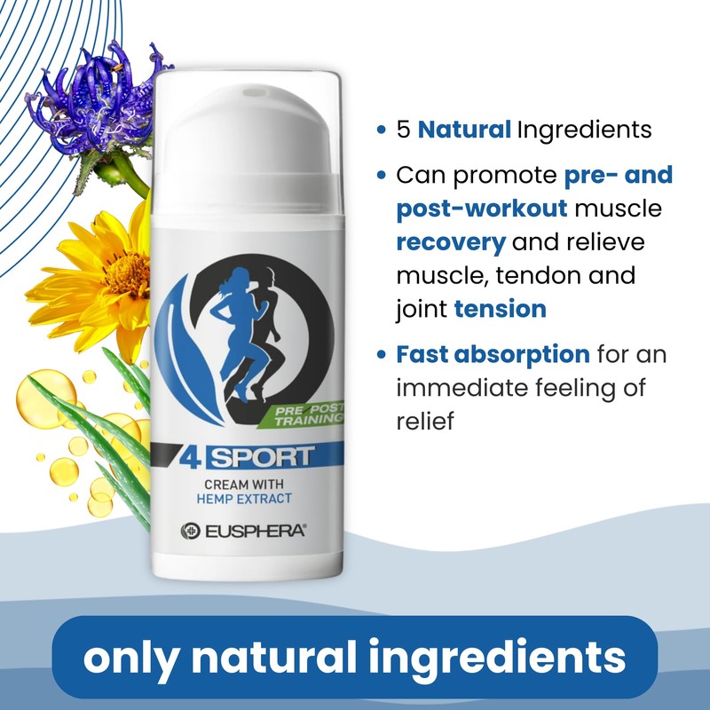 EUSPHERA - 4SPORT - Muscle Balm for Post Workout & Muscle Soreness 100% Natural Relief Body Cream with Hemp, Aloe, Devil's Claw and Arnica 2.5 Oz - Made in Italy