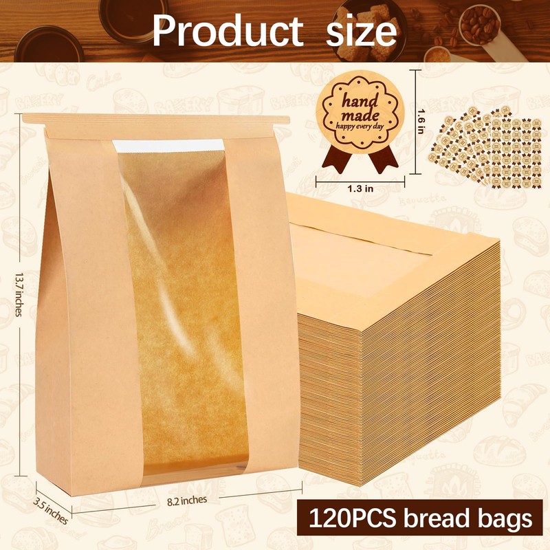 - Versatile for Bread, Sourdough & More:Use these paper bread bags for sourdough, cookies, sandwiches, or snacks. Sturdy design suits homemade bread sourdough, farmers’ markets, weddings, or shops. Includes 120 "Homemade happy every day" stickers for branding or heartfelt labels