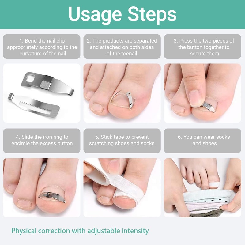 • WISSENSCHAFTLICHES KORREKTURPRINZIP - Basierend auf dem wissenschaftlichen Korrekturprinzip der physikalischen Mechanik kann unsere Nagel Klammer den Nagel je nach Pathologie und Form durch die elastische Kraft des Hebelprinzips aus der Nagelnut ziehen. Mit dem natürlichen Wachstum des Nagels wird der Nagel allmählich wieder in die normale Form gebracht, so dass er nicht mehr durchstochen werden muss, um die Schmerzen sofort zu lindern und den Nagel zu korrigieren.