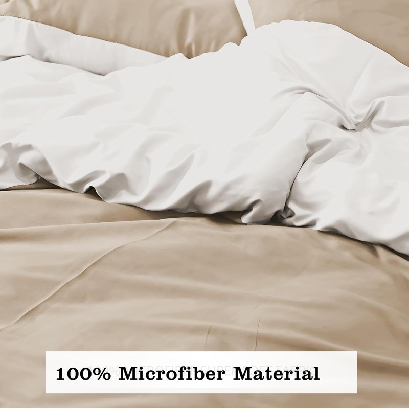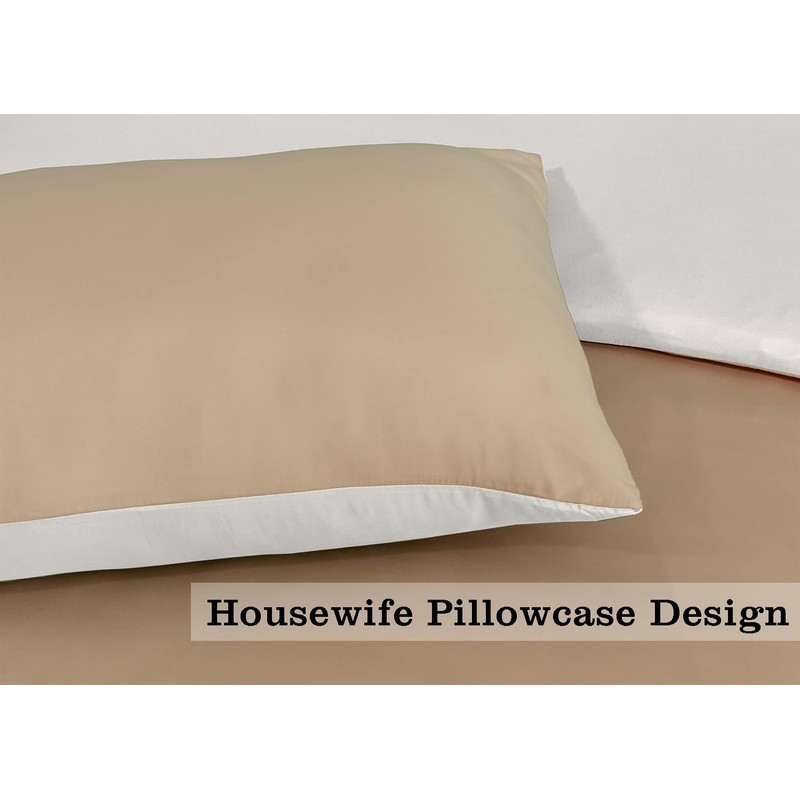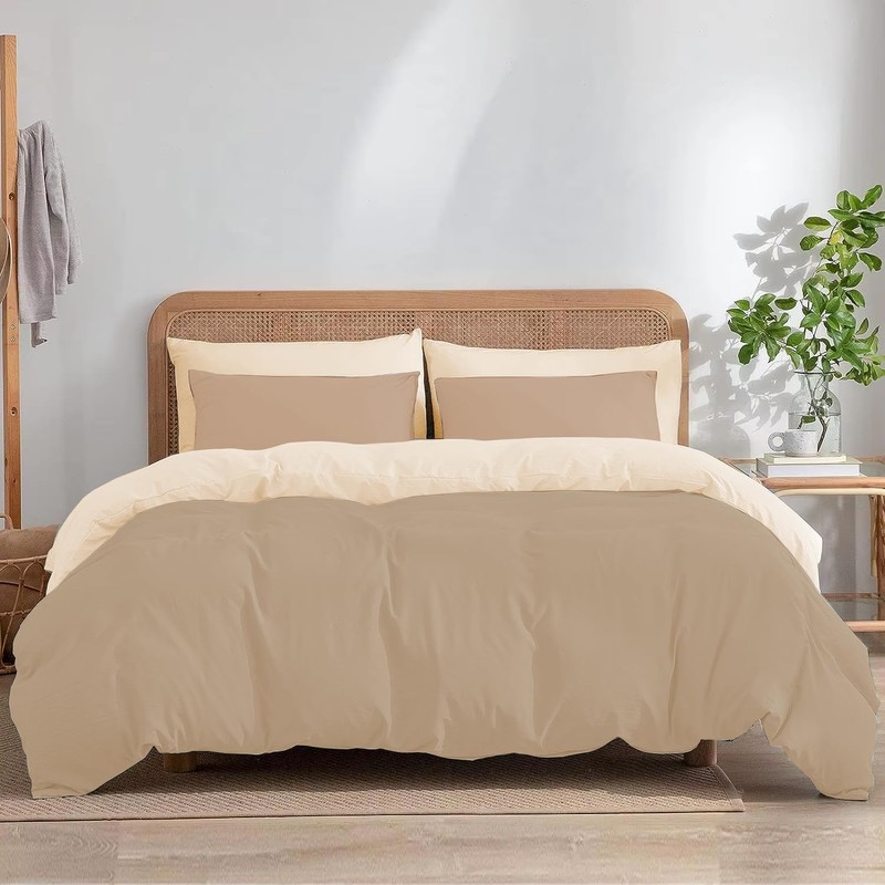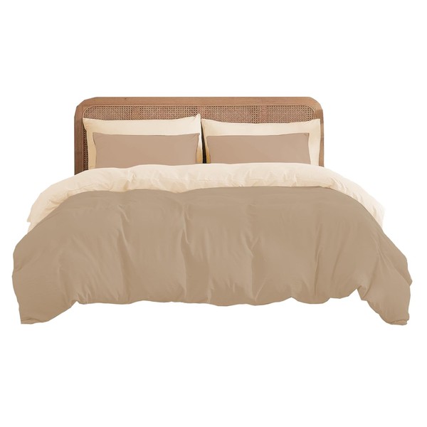 Ev Dekor Single Duvet Cover Set – Reversible Brushed Microfiber Bedding- Plain Dye Quilt Cover with Pillowcase - Mink/Cream