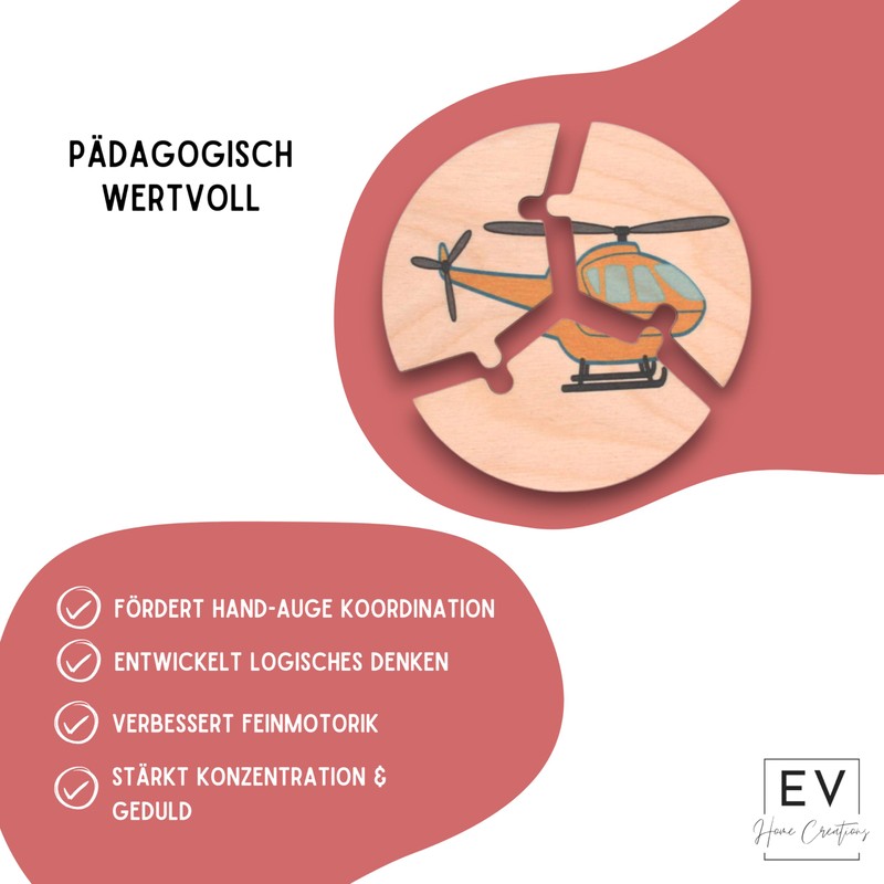 EV® My First Wooden Puzzle - Vehicles and Flying Fun | 3 Pieces with 9 Designs | High-Quality Children's Toy Made of Sustainable Italian Wood - The Perfect Puzzle from 2 Years