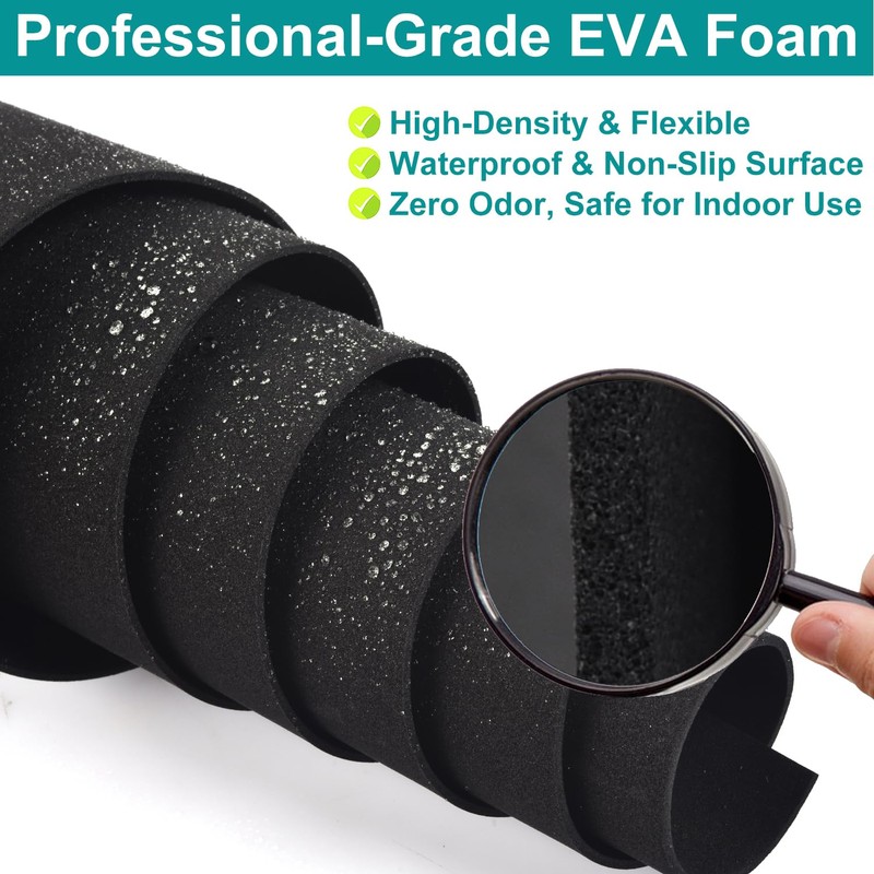 • EVA Foam Sheets:39 x 14 inches, 6mm thickness; It is made of environmentally friendly EVA material, non-toxic and odorless.Easy to cut,bend,glue,heat,molding,color,etc;