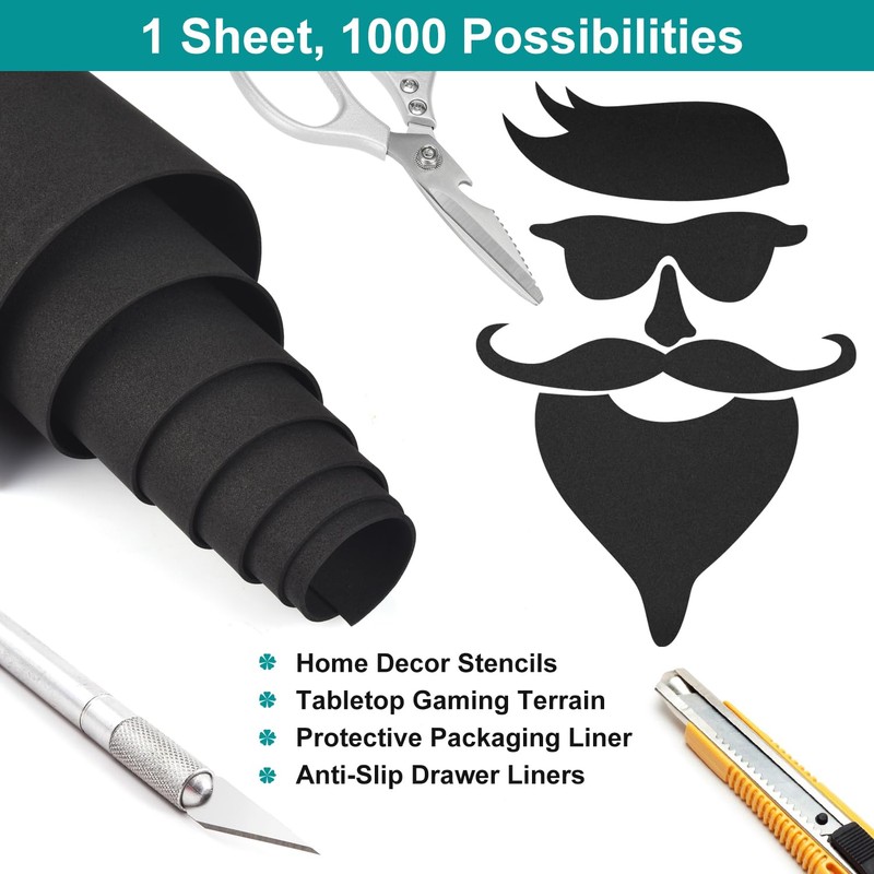 • MULTI-PURPOSE: EVA foam sheets design and create your own Halloween, cosplay, and theater production costumes; the black EVA foam can be customized using embellishments, chalk, crayons, paint, and permanent markers. Use for costumes and cosplay. Great for arts and crafts projects!
