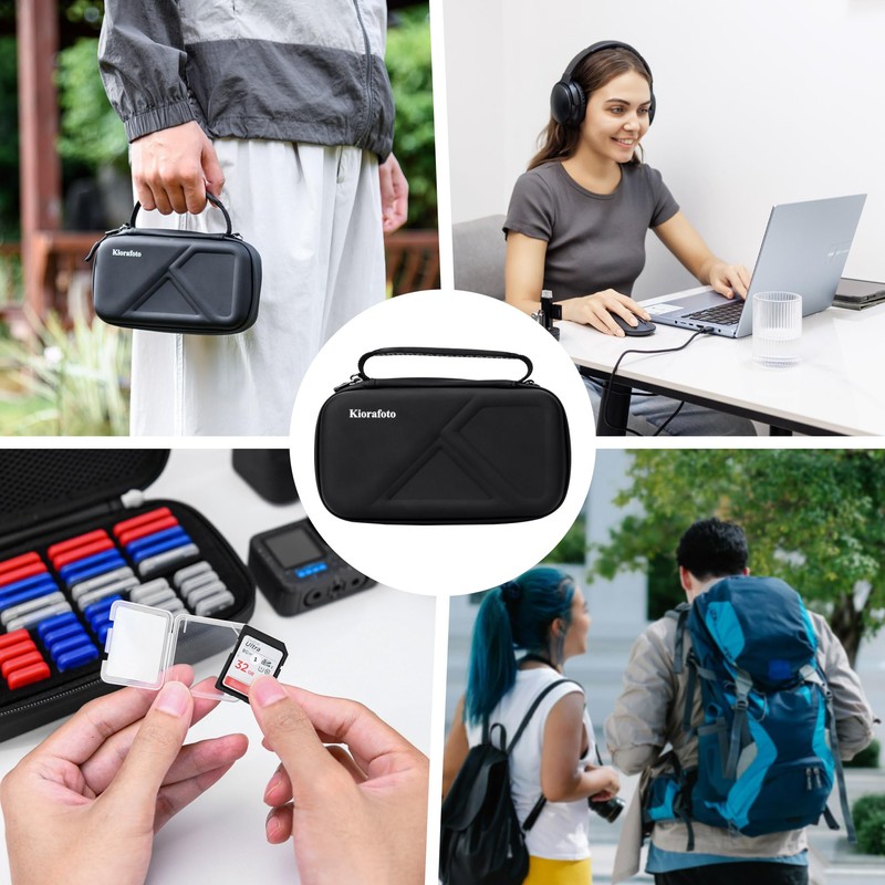 - Strictly Tailored:The internally customized EVA foam has a shock absorption function and independent vertical style storage, which can prevent small card cases from touching and scratching each other. The top cover of the holder is equipped with a zippered pocket, which can store small items such as camera batteries, data cables, card readers, etc.(Note: The inner foam is detachable and can be taken out as a storage bag for travel and outings!)
