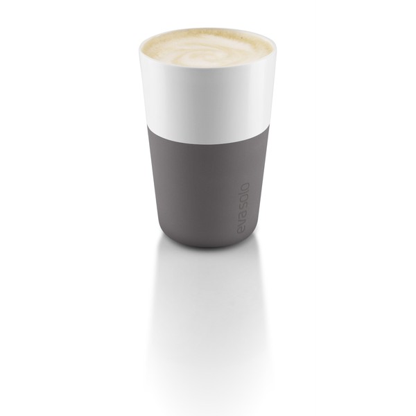 Eva Solo | 2 Cafe Latte Tumbler Mugs | 12 oz Porcelain Coffee Cup Tumblers with Silicone-coated Grip | Danish Design, Functionality & Quality | Elephant Grey