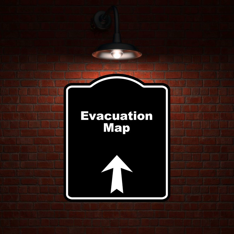 Evacuation Map Black Sign Arrow Up Aluminum Composite Sign 20 x 24 inches