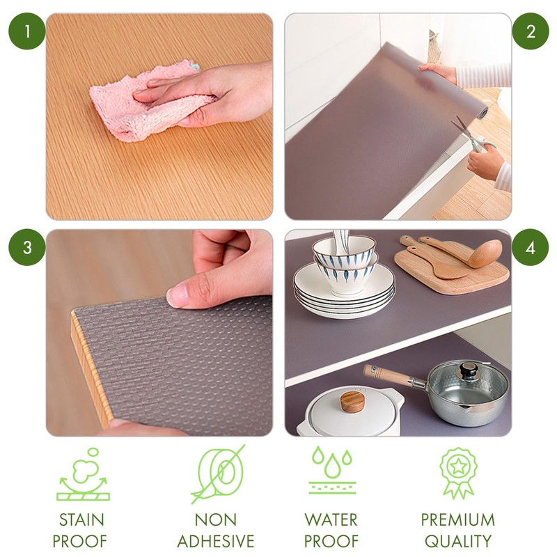 - WASHABLE: You can easily wash any stains and this shelf liner doesn't leave any stain marks. You can have your shelf hygiene at its finest. Protect your cabinets with the quality and the features of our cabinet liner!