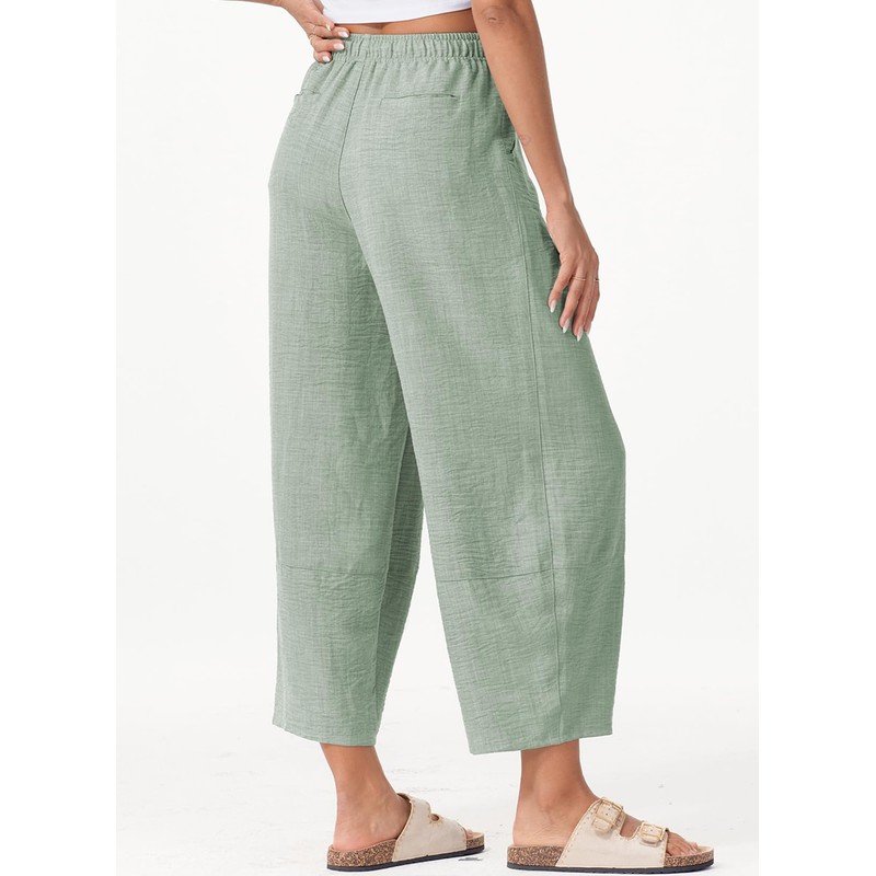 EVALESS Women's Pants Summer Casual High Waisted Wide Leg Barrel Trousers Slacks Mist Green M