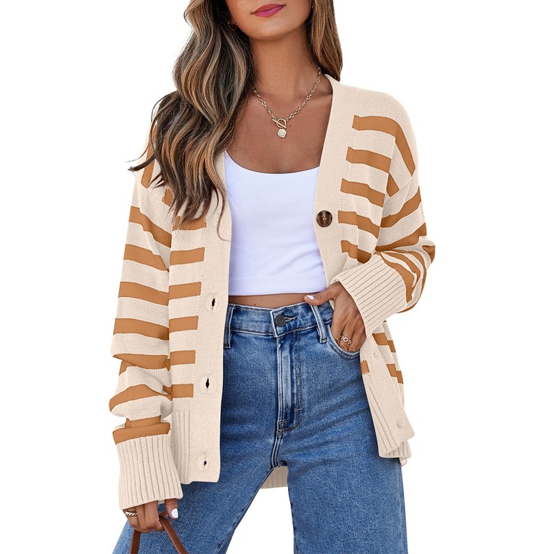 • Fashionable Striped Design: Elevate your style with this chic cardigan sweaters for women featuring a trendy striped design, perfect for adding a touch of sophistication to your outfit.