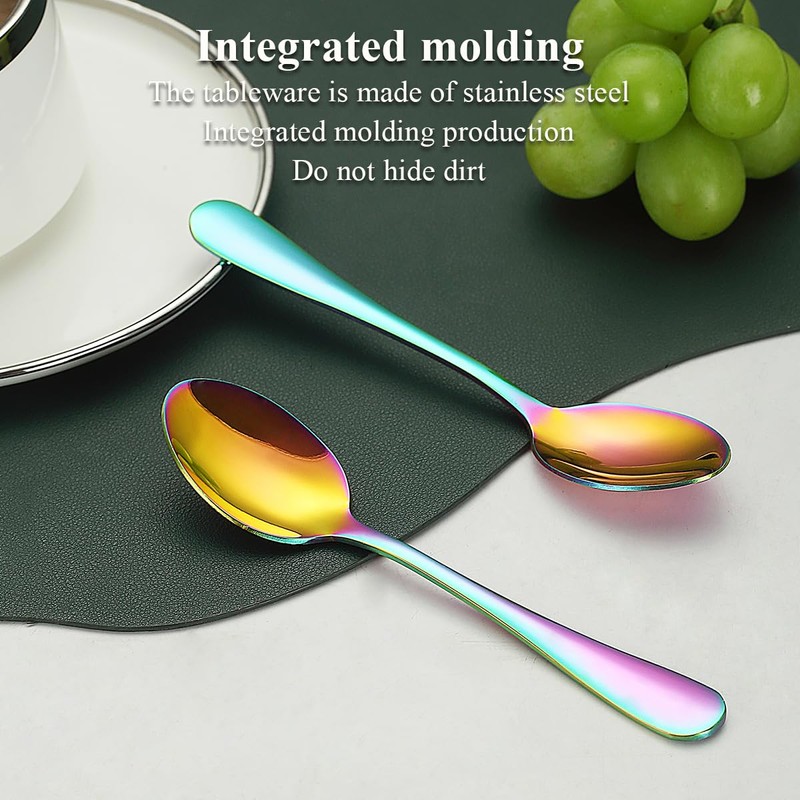 Evanda Teaspoon Rainbow 12 x 14 cm, Coffee Spoon Made of Titanium, Rainbow Coating, Stainless Steel, Espresso Spoon, Dessert Spoon, Small Spoon, Cutlery for Tea, Coffee, Dessert, Dishwasher Safe