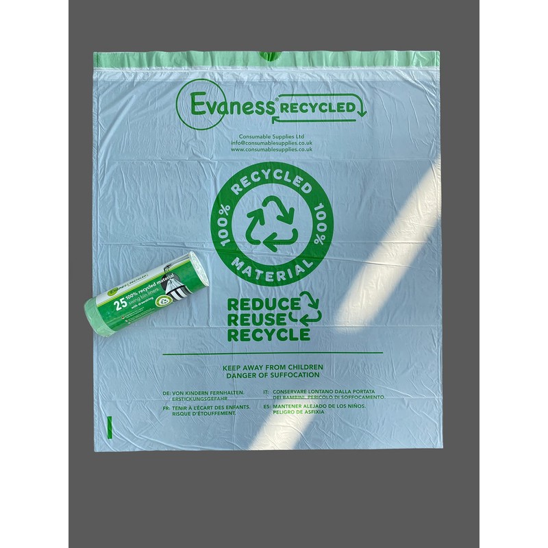 - These bin bags are made from 100% Recycled Material. REDUCE-REUSE-RECYCLE