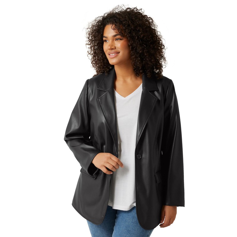 EVANS Curve Faux Leather Blazer - Women's - Plus Size Curve Black