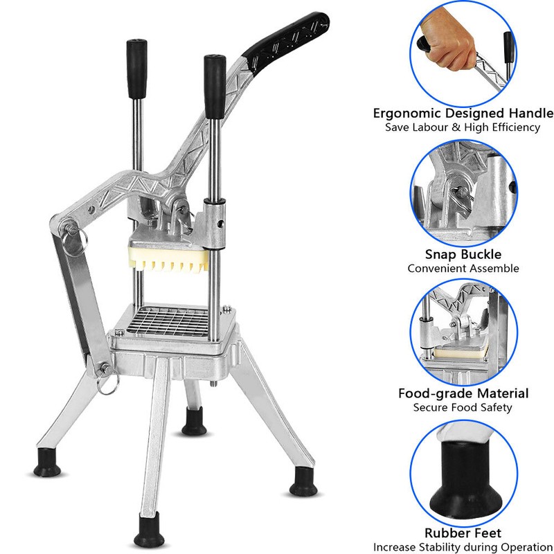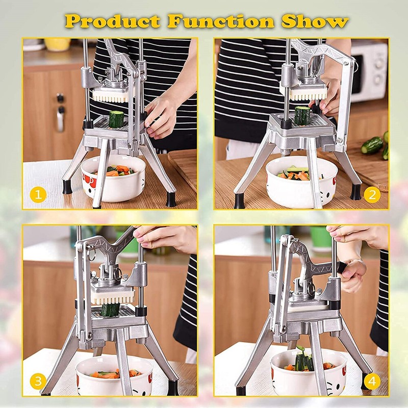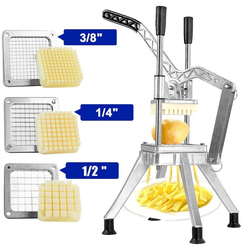 The commercial vegetable cutter comes with 3 sizes of blades,1/2-Inch, 3/8-Inch and 1/4-Inch. It can meet your various cutting need in daily life.