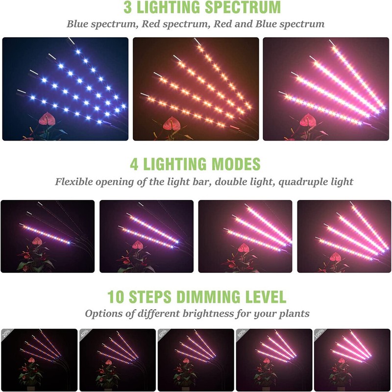 EVARGC LED Grow Light with Stand for Indoor Plants Full Spectrum Plant Grow Lamp 4 Head