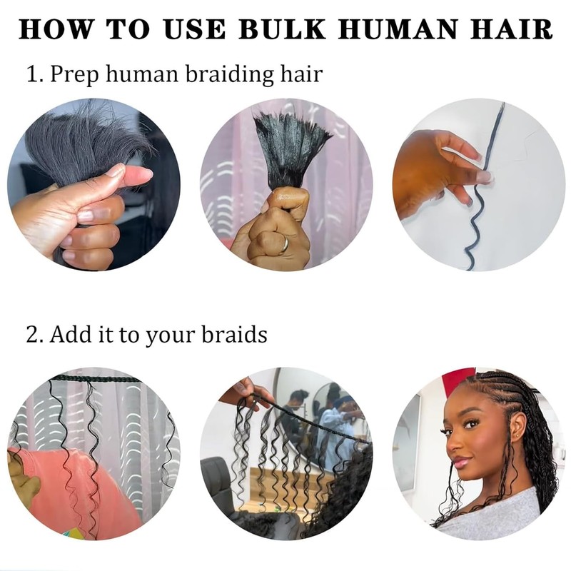 - Human hair braiding material: the deep wave bulk human hair for braiding is composed of unprocessed human hair, without synthetic or animal hair, can be permed and braiding, minimal tangling and minimal shedding. Convenient for you to create a great hairstyle.