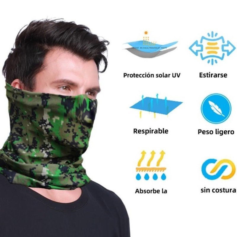 - CARACTERÍSTICAS: 100% Microfibra Poliéster, Sin Costuras, Protección SPF40+, Protege contra el Frío Ligero, Repele la Humedad, Protege contra Insectos, Protege contra el Viento, Secado Rápido.