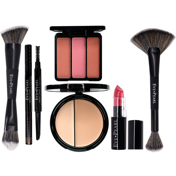 - EVE PEARL 6 Pcs Beautiful Face Collection Contains HD Dual Foundation, 201 Dual Contour Blender Brush, Blush Trio, 204 Dual Fan Highlighter Brush, Brow Liner and Definer and Crème Lipstick. Achieve a Flawless Face in minutes. Eve’s 2 simple steps to look good with products that feel good and are good for us.