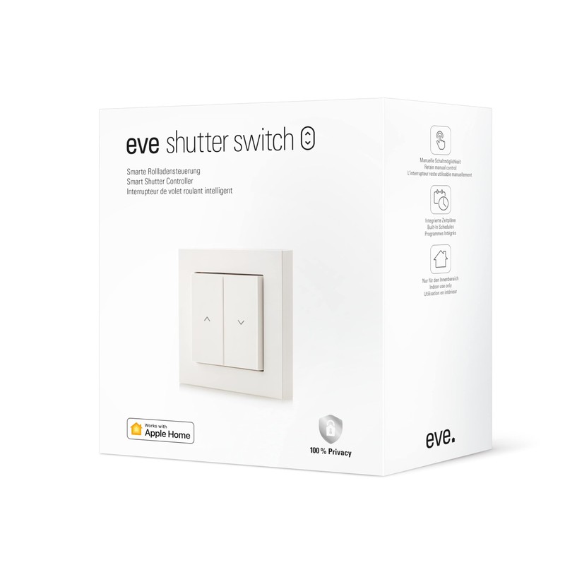 - Control the roller shutter via app, Siri or on the switch yourself. Save schedules on Eve Shutter Switch to automatically switch the roller shutter regardless of iPhone and home network.