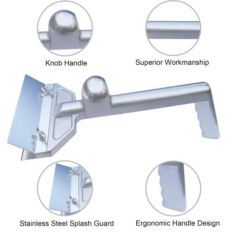 - ★ ERGONOMIC DESIGN: The long handle of the large grill scraper provides more leverage and prevents burns on hands and fingers. A raised knob grip near the front can help you give more control and pressure. The splash guard prevents residue from splashing upward during cleaning and keeps oil and debris off your hands.