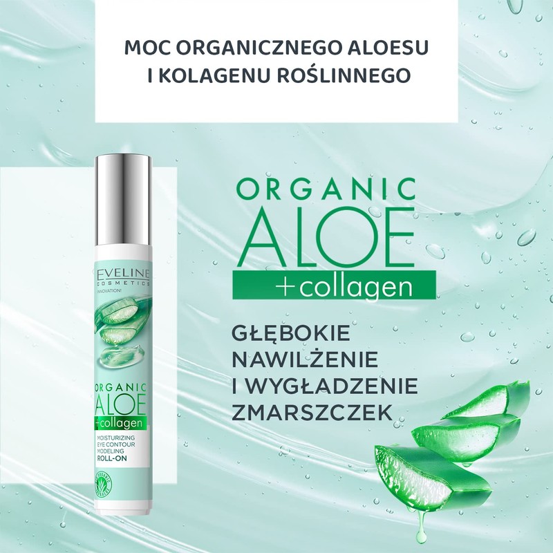 Eveline Cosmetics Organic Aloe + Collagen Moisturising Roll-On Modeling Eye Contour, 15 ml