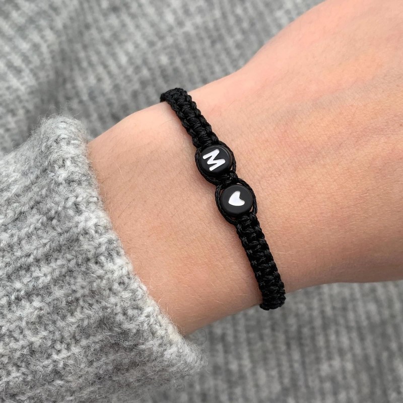 EVEMATE Bracelet with Letter and Heart for Friends and Couples - Initial A-Z Name - Braided Friendship Bracelet for Women, Men and Children, Adjustable, Cotton, No Gemstone