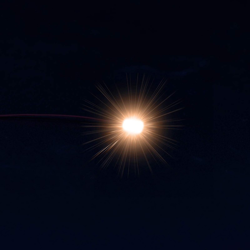 The LED already have cables soldered onto the backside whereby both cables are leading flat in the same direction. This kind of soldering is very extensive and difficult to perform, but is offering maximum flexibility when applying the LED and is ensuring place-saving usage.