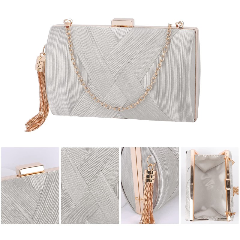 Evening Bag Satin Clutch Bag for Women, Tassel Pendant Clutch Elegant Evening Bag for Wedding Bridal Prom Party Handbag Crossbody Bag with Detachable Chain