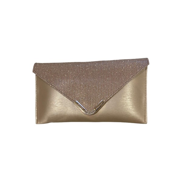 Evening Clutch Purse with, Rose Gold and Silver, Chain Strap (Gold, Small)