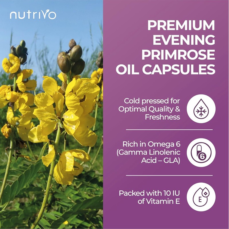 🌿 Premium Evening Primrose Oil Capsules: Experience the natural benefits of evening primrose oil, trusted for supporting skin health, hormonal balance, and overall well-being.
