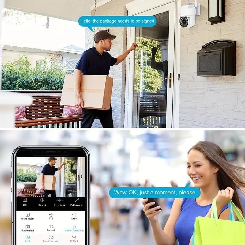 • Cámara de Seguridad Esférica, Detección de Movimiento, Visión Nocturna en Color, Notificación por Alarma, Cámara Inteligente Inalámbrica para Hogar con Wi-Fi 1080P, Monitoreo Panorámico de 355°, Detección Inteligente de Movimiento, Audio Bidireccional, Solo 2.4GHz ☆Compatible con Alexa para control de voz, audio bidireccional y alarma de sonido, micrófono y altavoz integrados, puedes tener una conversación entre tú y tu visitante, también puedes crear una alarma de sonido para ahuyentar al invasor a través del altavoz.