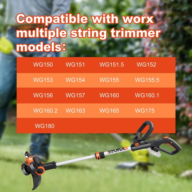 Compatible with worx trimmer models: WG150, WG151, WG151.5, WG152, WG153, WG154, WG155, WG155.5, WG156, WG157, WG160, WG160.1, WG160.2, WG163, WG165, WG175, WG180.