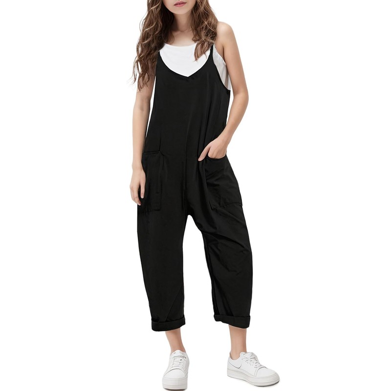 - Stylish Design: This loose-fitting romper features a v-neck design and adjustable spaghetti straps for a comfortable fit. It also comes with two convenient side pockets, making it both fashionable and functional