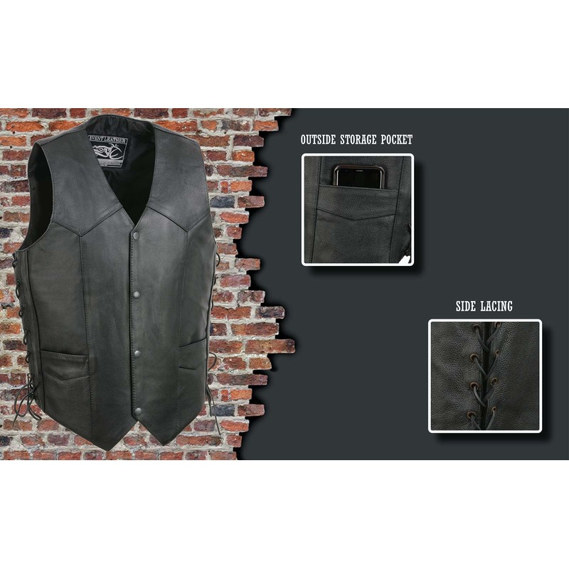 - ✅ Snap closure for easy wear: The vest is equipped with a snap closure system, allowing for quick and hassle-free wear. The snaps ensure a secure and snug fit, so you can ride with confidence, knowing that your gear will stay in place. The side lace detailing on the leather vest adds a uniqueness to its design and it also serves a functional purpose by providing an adjustable feature that allows for a personalized fit, ensuring maximum comfort and freedom of movement during your rides.