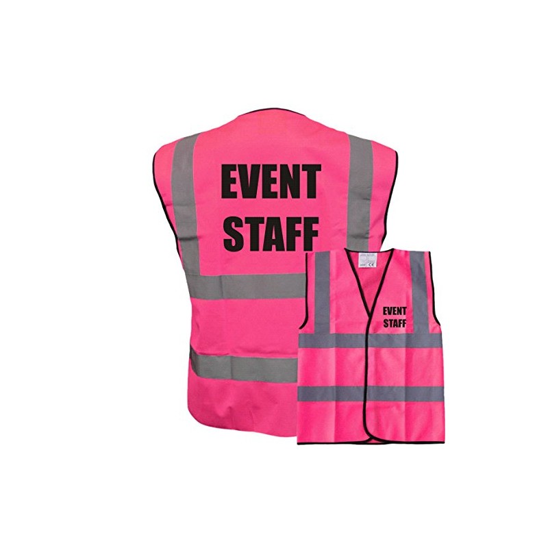 Event Staff Pink Hi Vis Viz Safety Vest Waistcoat, Reflective High Visibility Work Wear, Events, large