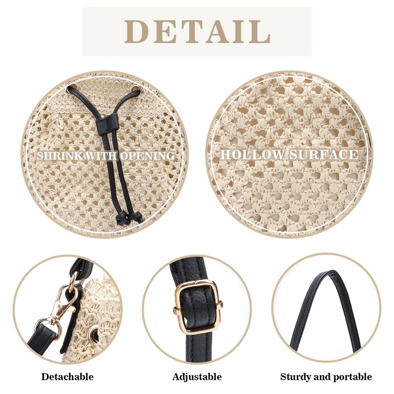 - Material: The straw bucket bag is made of straw rope ,soft and lightweight, a nice choice of travel accessories for your summer vacation and travel!