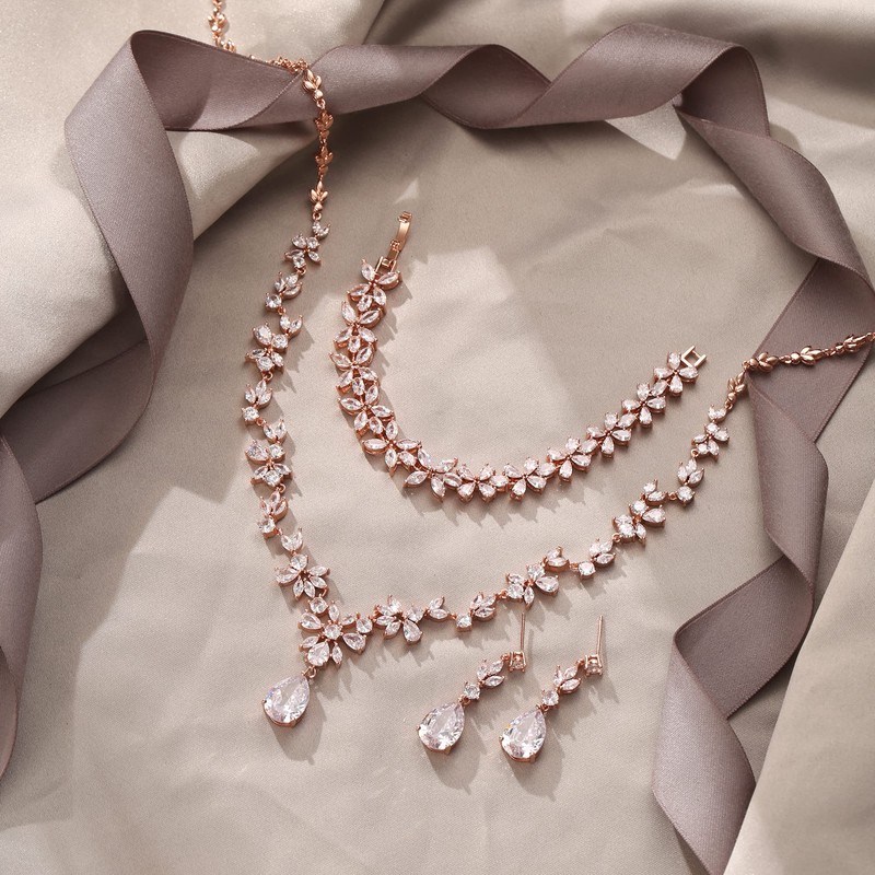 | Color: | Necklace+earrings+bracelet_rose Gold Plated |
