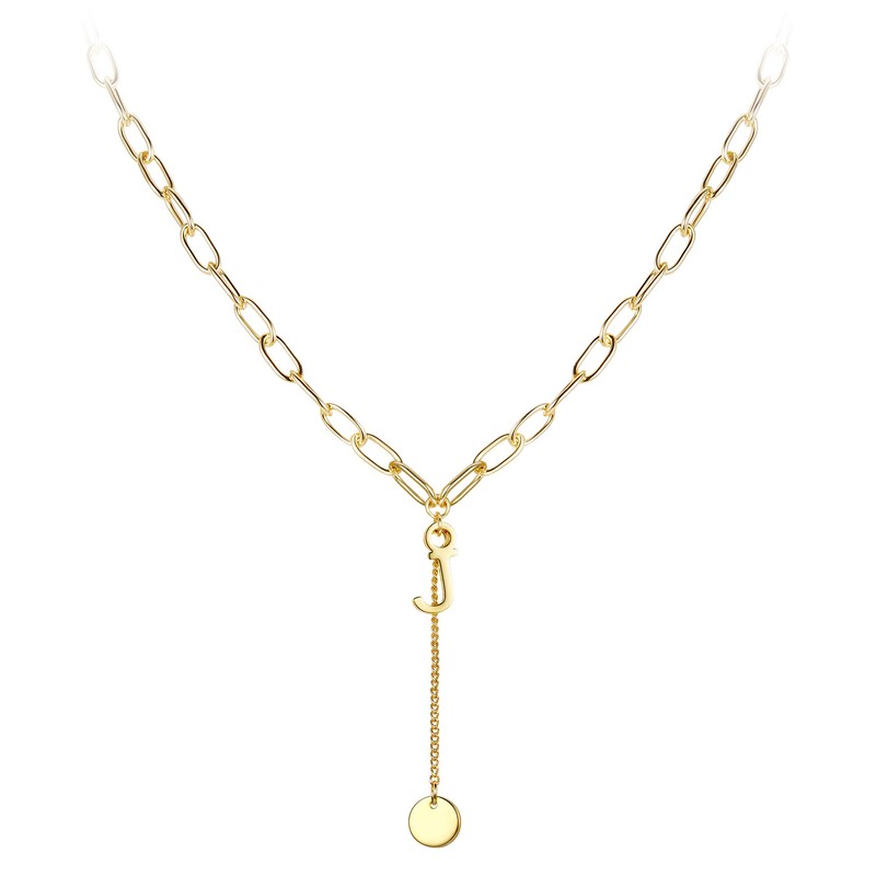 EVER FAITH Initial Letter J Necklace Simple Alphabet Pendant Choker Round Disc Paperclip Link Chain for Women Gold-Tone