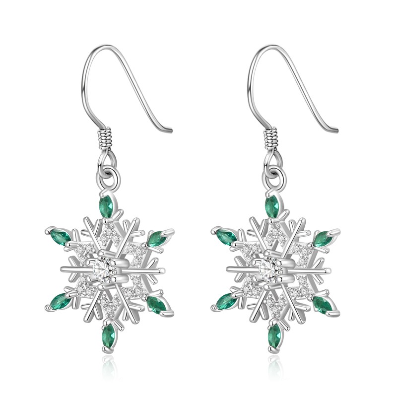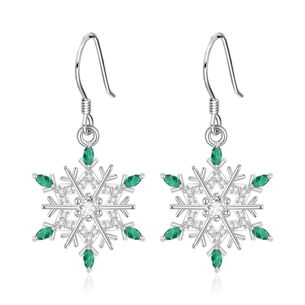EVER FAITH Snowflake Earrings 925 Sterling Silver Green Cubic Zirconia Dainty Winter Flower Hook Dangle Earring Christmas Holiday Jewelry Gifts for Women Girls