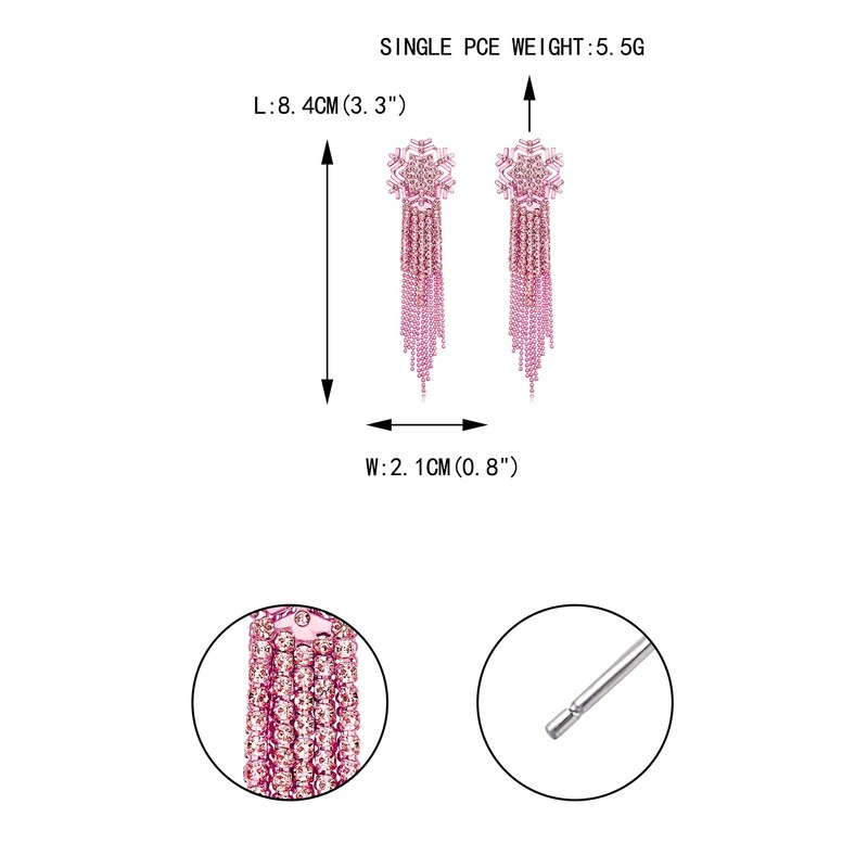 - Snowflake Tassels Earrings Length: 8.4cm(3.3"), Width: 2.1cm(0.8"), Total Earring Weight: 11g.