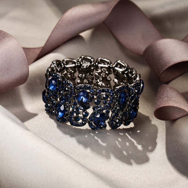 Ever Faith Women's Crystal Teardrop 8 Shaped Knot Elastic Stretch Bracelet Navy Blue