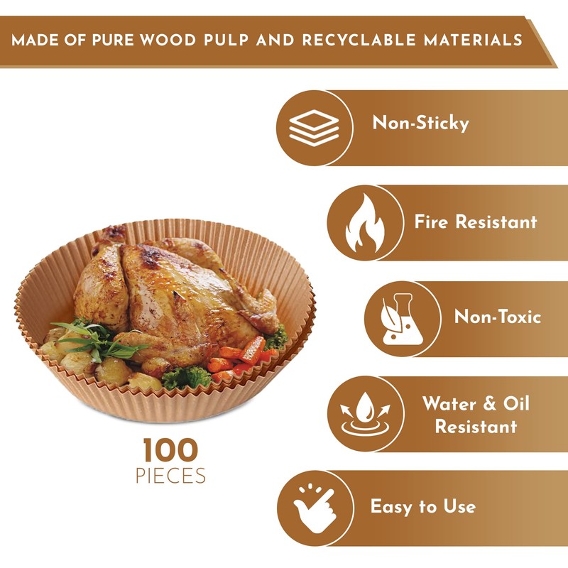- Quantity - Our package includes 100pcs, air fryer parchment paper liners for everyday cooking, specially designed to fit your air fryer size of 6.3 inch, which enables you cook reasonable quantity whenever you want.
