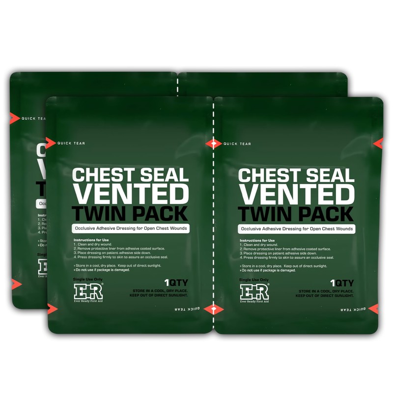- 2-PACK (4-COUNT) CHEST SEALS – Includes two packs, each containing two vented chest seals, providing a total of four chest seals for immediate use in treating open chest wounds.