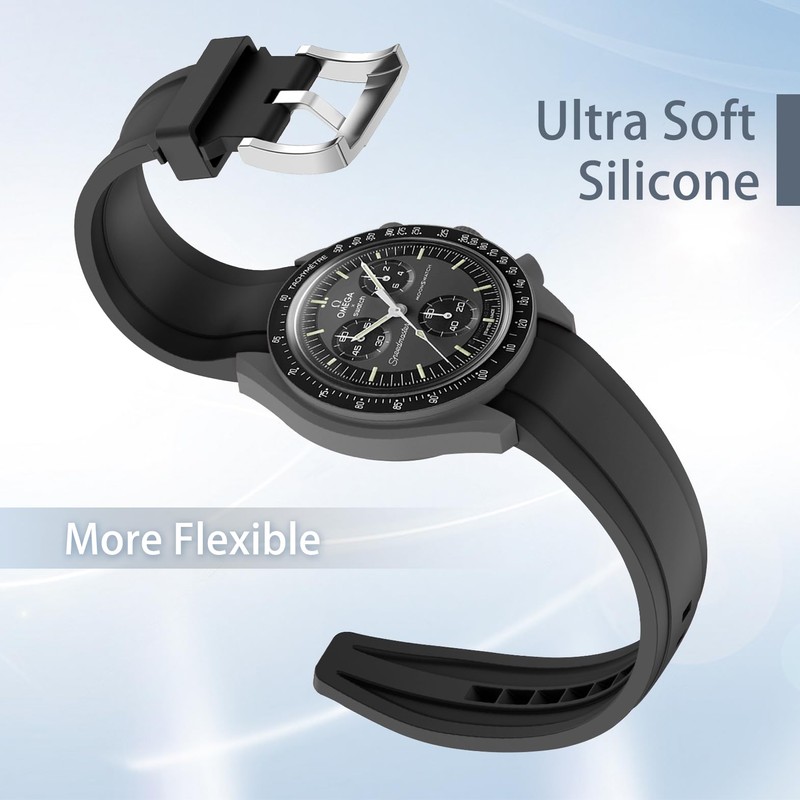 - 【High-Quality Material】moonswatch watch band is crafted with precision and durability in mind, our watch strap for moonswatch is made from premium-grade silicone and stainless steel buckle material. These rubber materials ensure a comfortable fit, water resistance, and long-lasting performance.
