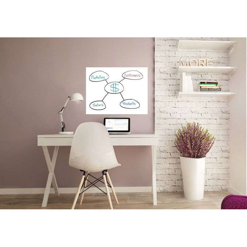 - Brainstorm, collaborate and communicate with this easy self stick dry erase surface. Perfect for any wall, door, desk, table or smooth hard surface.
