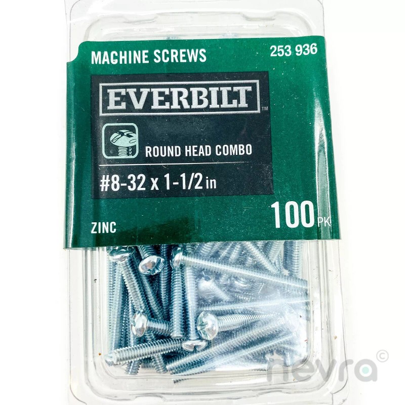 Everbilt #8-32 x 1-1/2 in. Combo Round Head Zinc Plated Machine Screw (100-Pack)