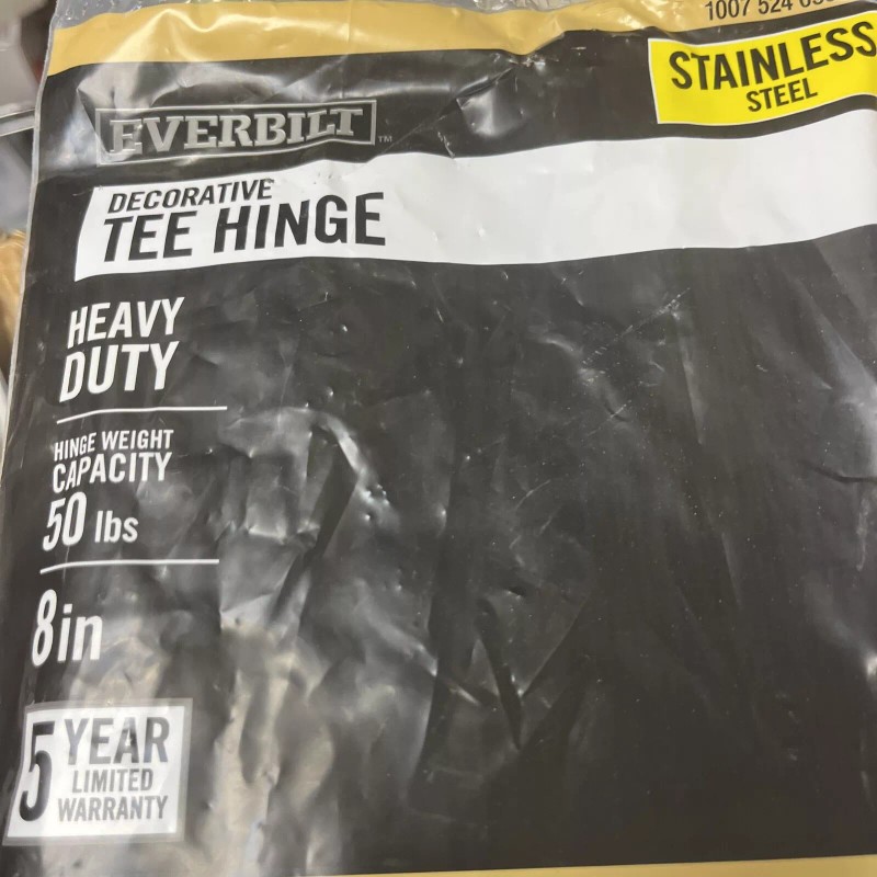 Everbilt 8 in. Black Stainless Steel Decorative Gate Tee Hinge. Condition is New. Shipped with USPS Ground Advantage.