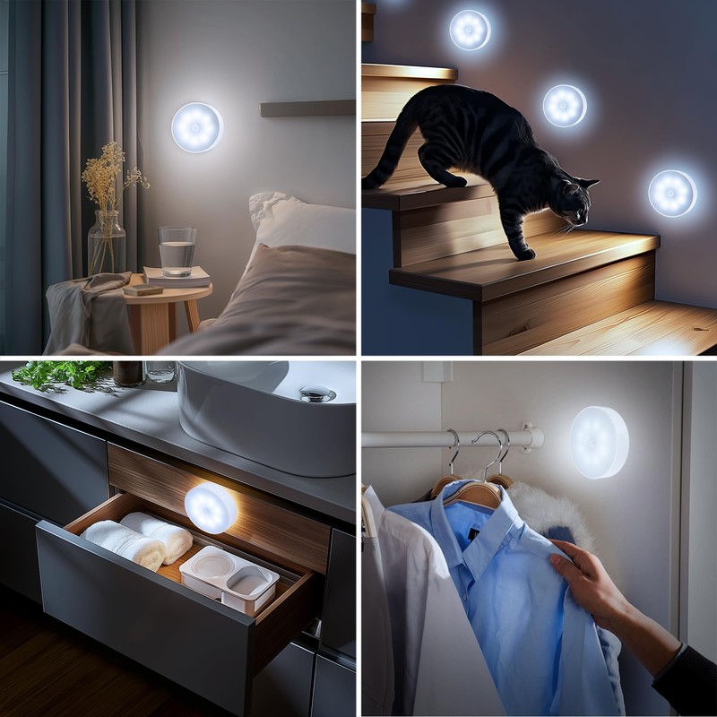EverBrite 6 pack round sensor light, each with 8 lamp beads, 125° lighting range, and at least 25,000 hours of service life, paired with its multiple features: sensor function, remote control, adjustable brightness, timing function, magnetic attraction and rechargeable, make it extremely cost-effective and ideal for lighting under cabinets, stairs, study rooms and other areas of home