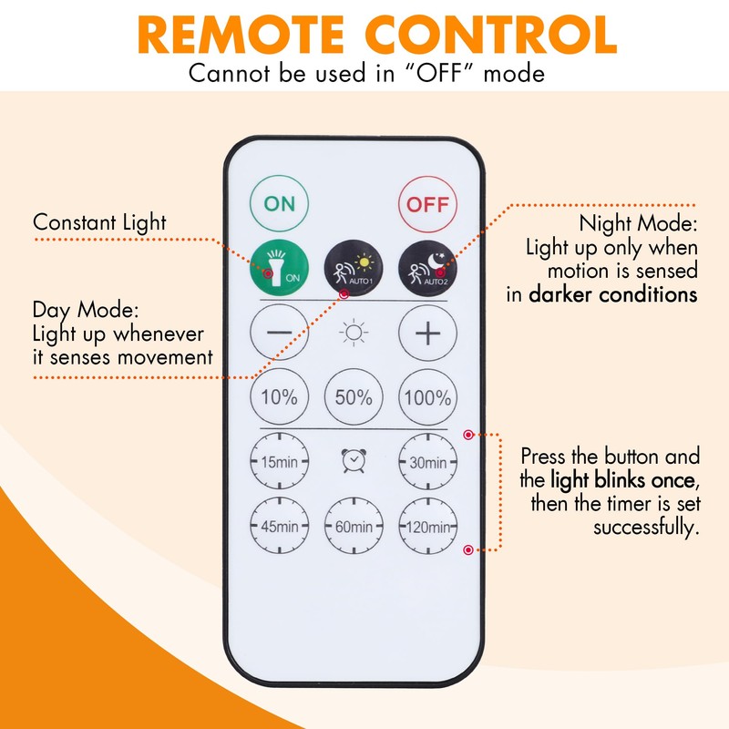• Motion Sensor Light: In "AUTO" mode, the light will turn on automatically when it senses people coming close and turn off after 20-30S when no motion sensed, convenient and power-saving. Note: ensuring it isn't obstructed by objects helps maintain its effectiveness in detecting motion